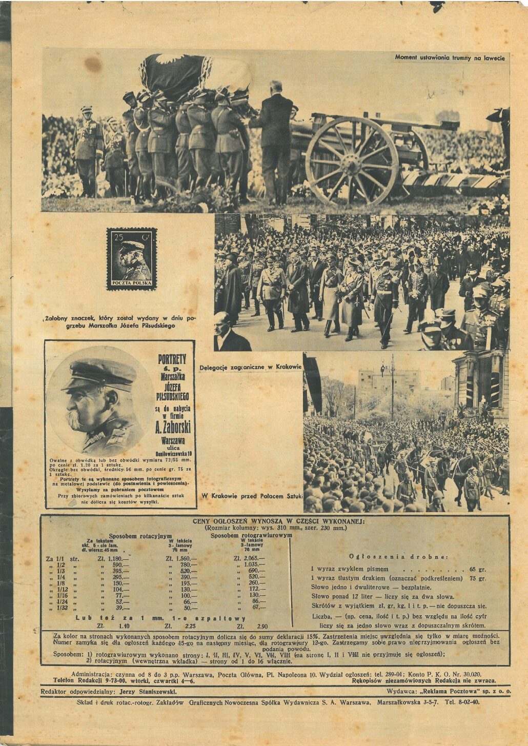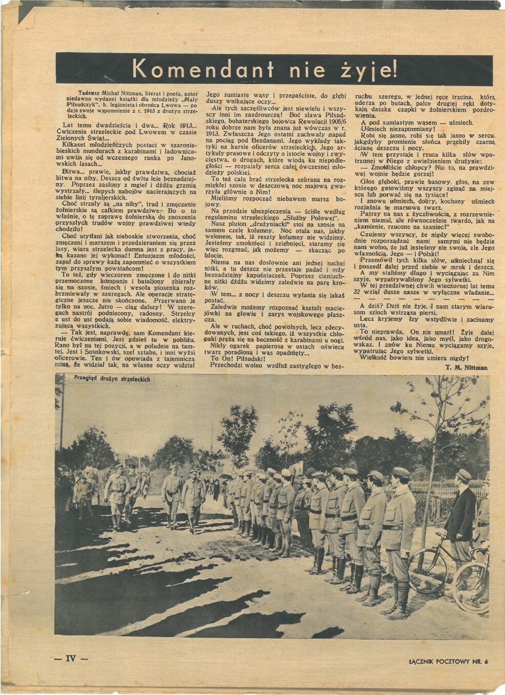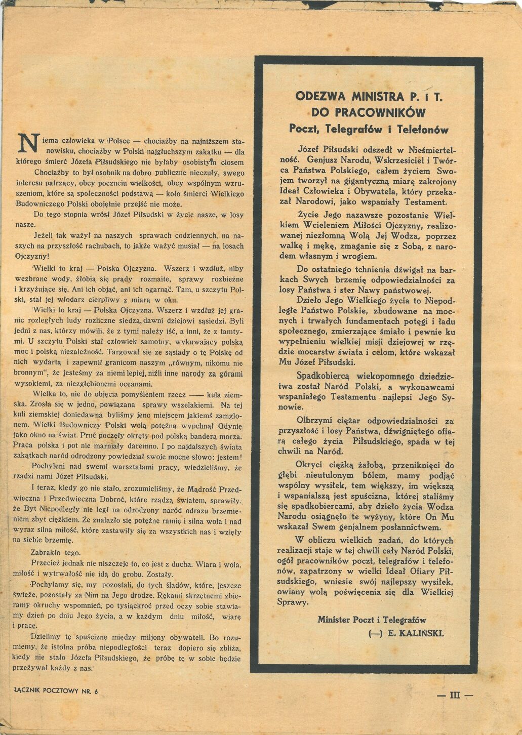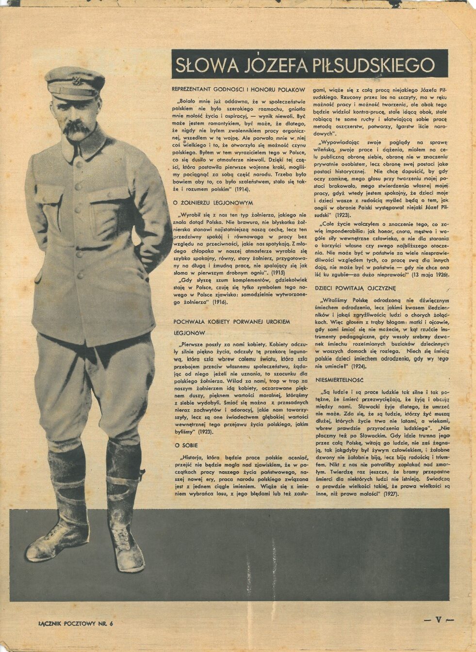 12 maja przypada 90. rocznica śmierci marszałka Józefa Piłsudskiego. Uroczystości pogrzebowe tego męża stanu trwały od 13 do 18 maja 1935 roku. W celu oddania hołdu zmarłemu przywódcy cały numer 6 „Łącznika Pocztowego” wydanego w czerwcu 1935 roku poświęcony został osobie Józefa Piłsudskiego.