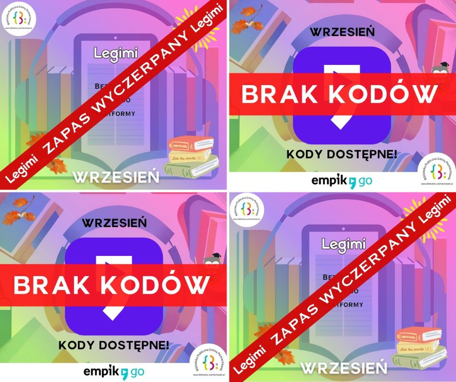 Kody na październik będziemy rozdawać już od 1 października (środa). Pamiętajcie aby napisać da nas parę dni przed tym terminem na: multimedia@biblioteka-pomiechowek.pl