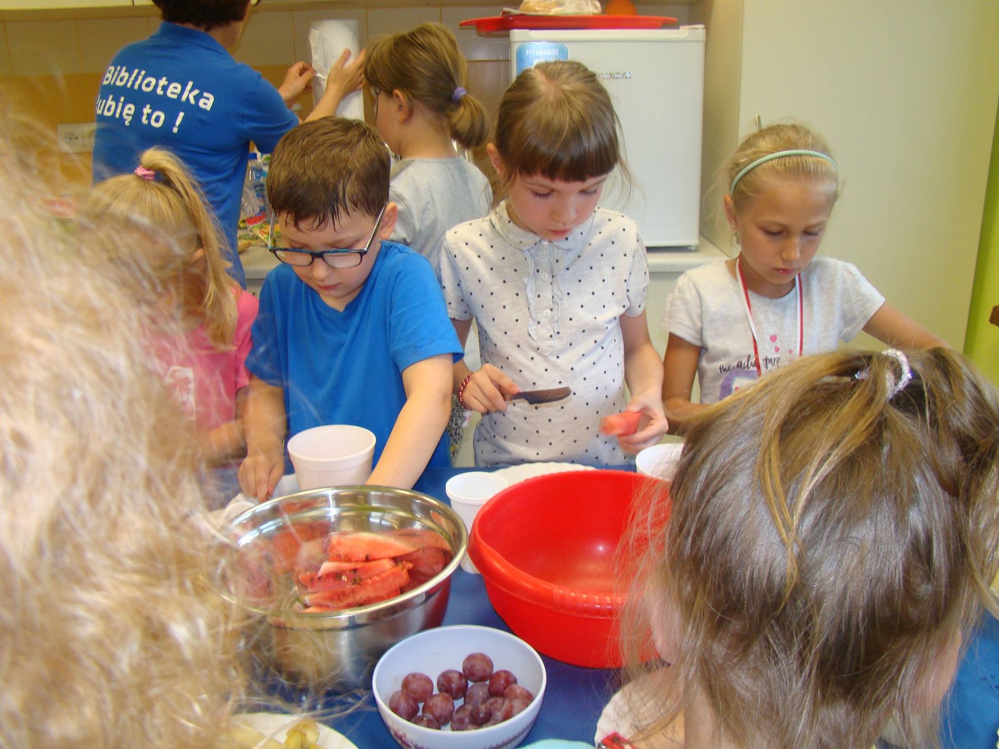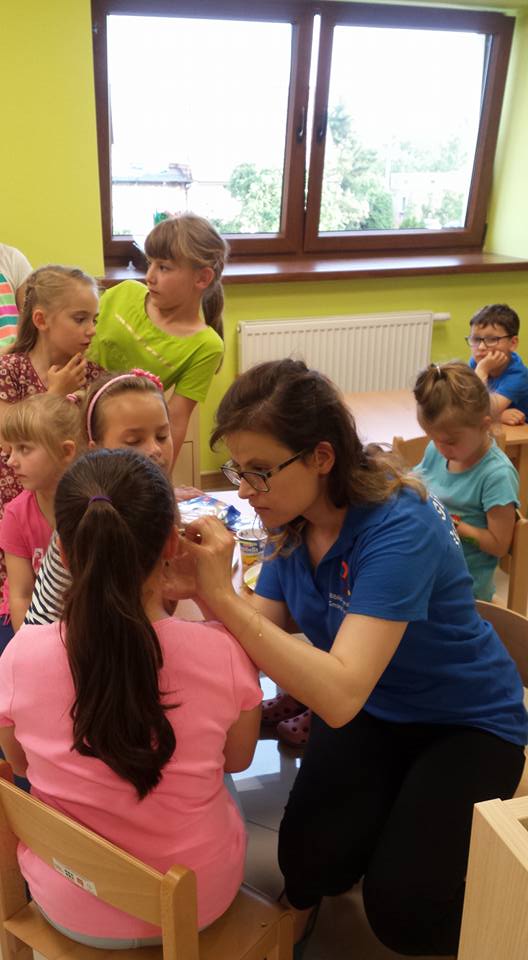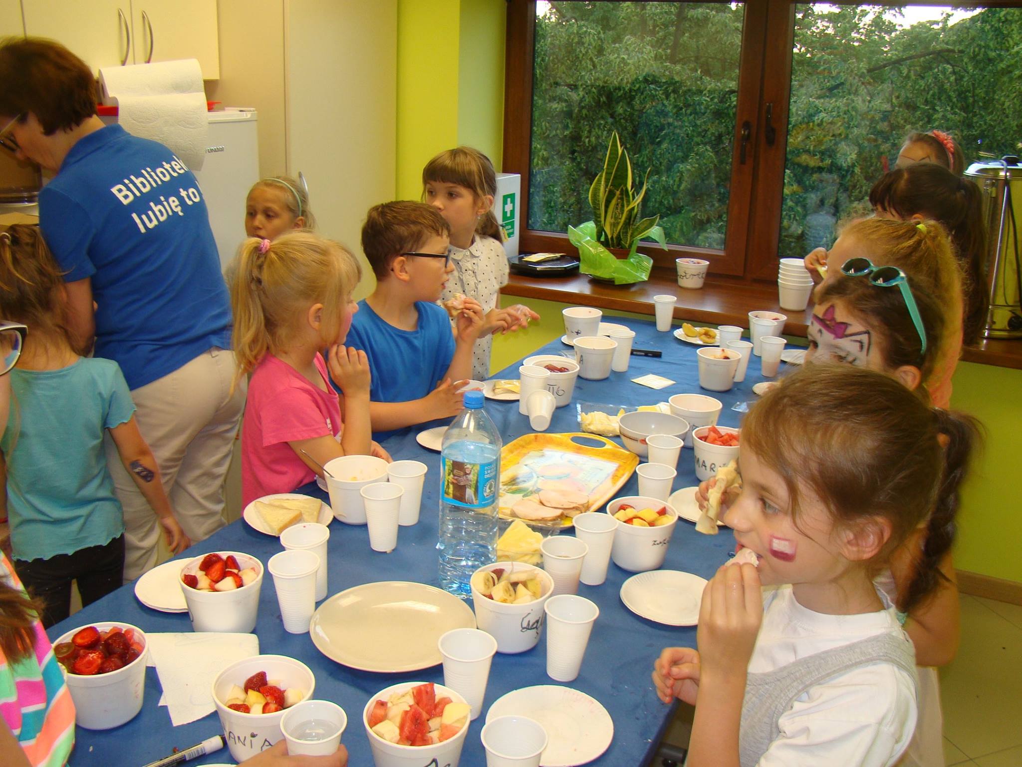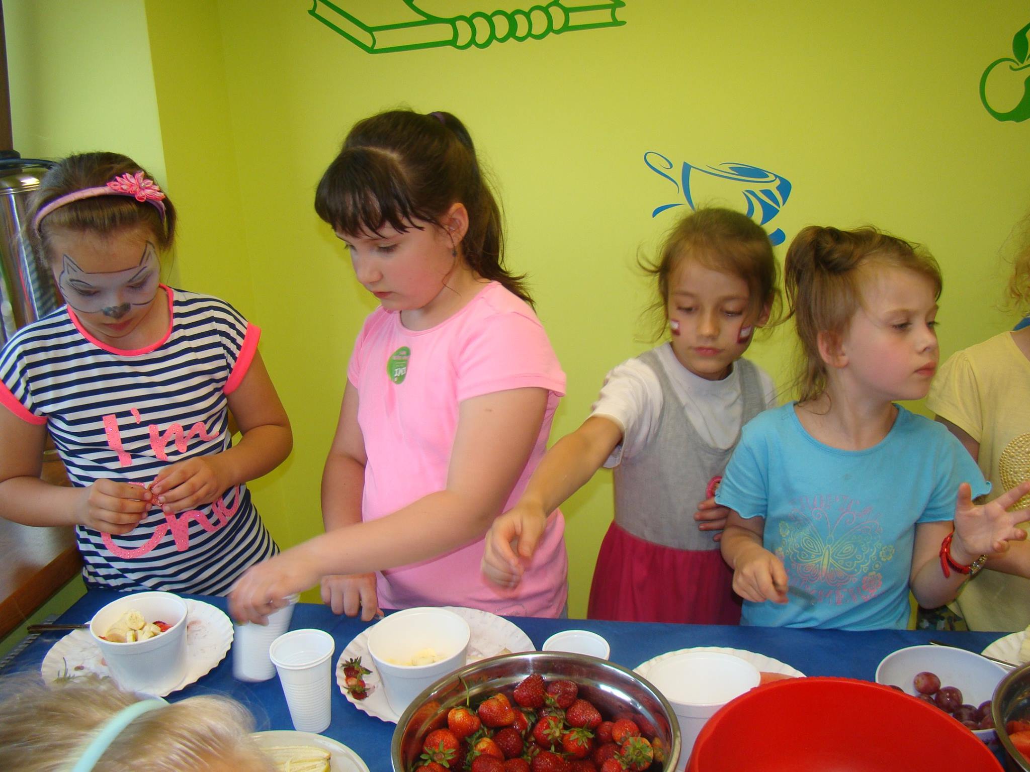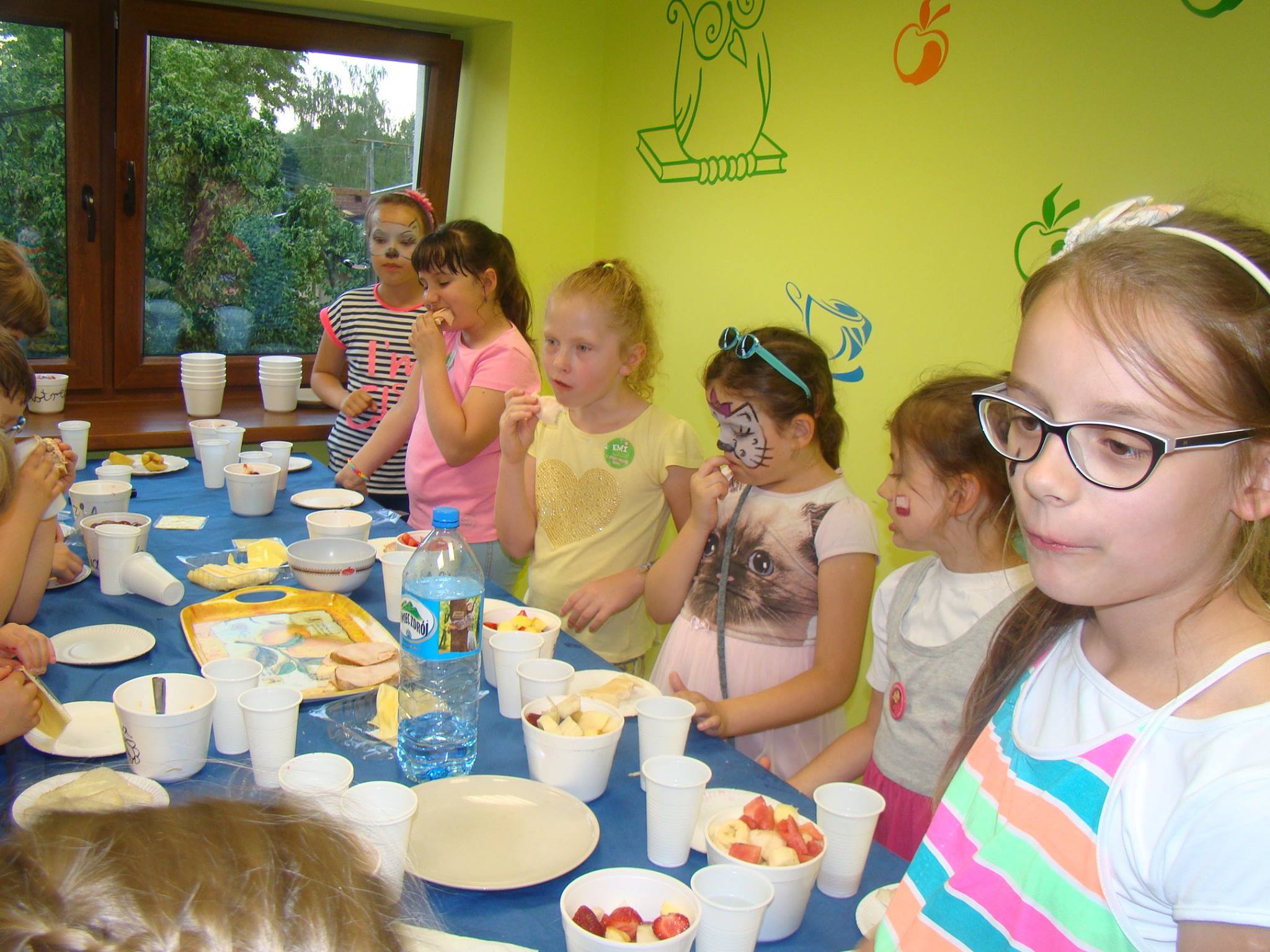W programie imprezy nie zabrakło malowania buziek oraz gier i zabaw ruchowych. Dzieci przygotowały także zdrową sałatkę owocową oraz pyszne kanapki i wspólnie zjadły kolację. Na zakończenie wysłuchały książki „Basia i kolega z Haiti” autorstwa Zofii Staneckiej. Ten tomik przygód Basi przybliża problem rasizmu, tłumaczy czym jest adopcja i pomoc humanitarna.